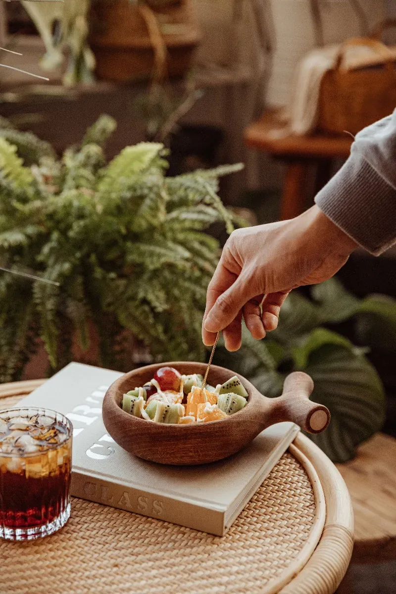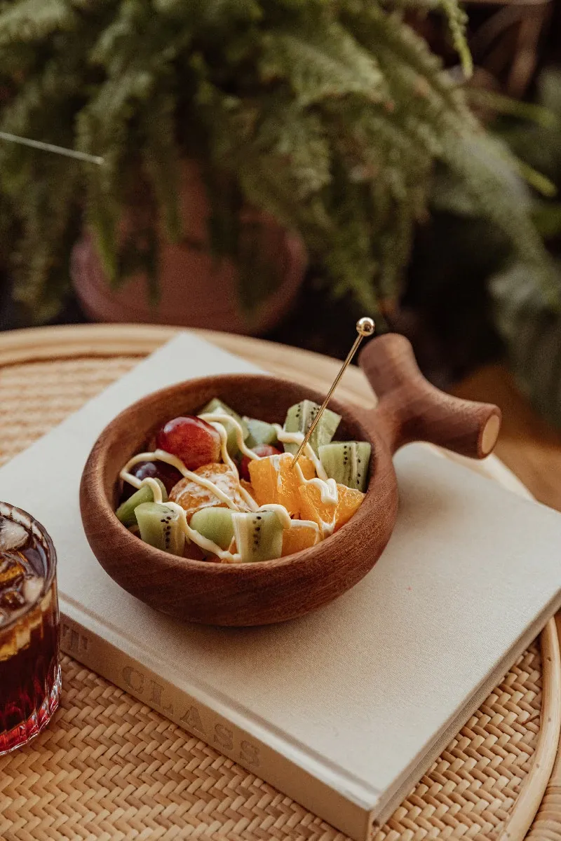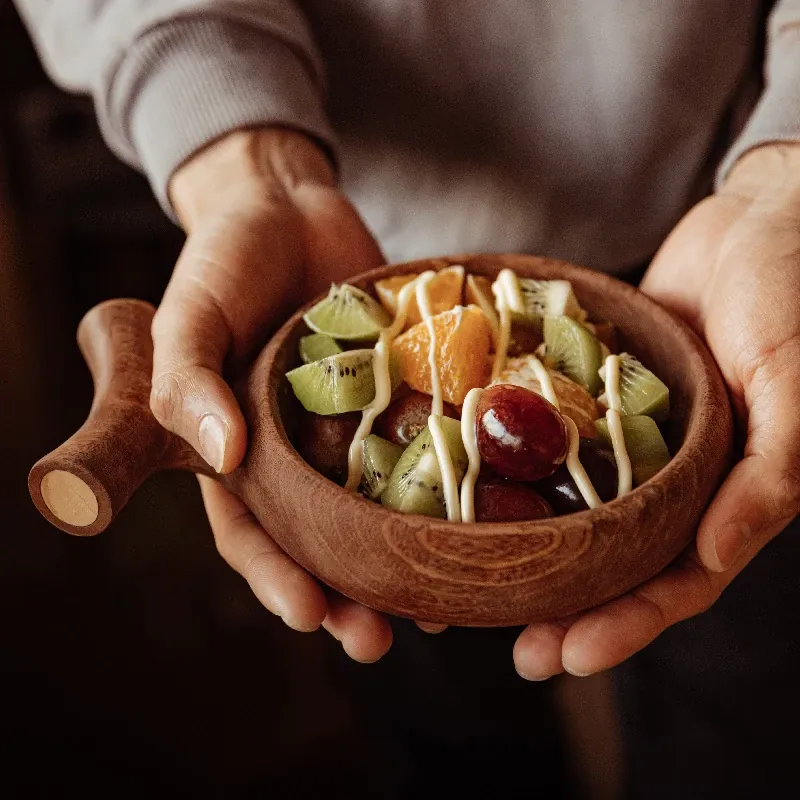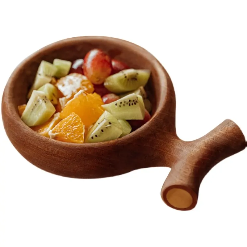 Original Rustic Wooden Salad Bowl - Stylish Japanese-Inspired Dining Dish for Fruits and Vegetables, Eco-Friendly and Unfinished, Perfect for Home Use.
