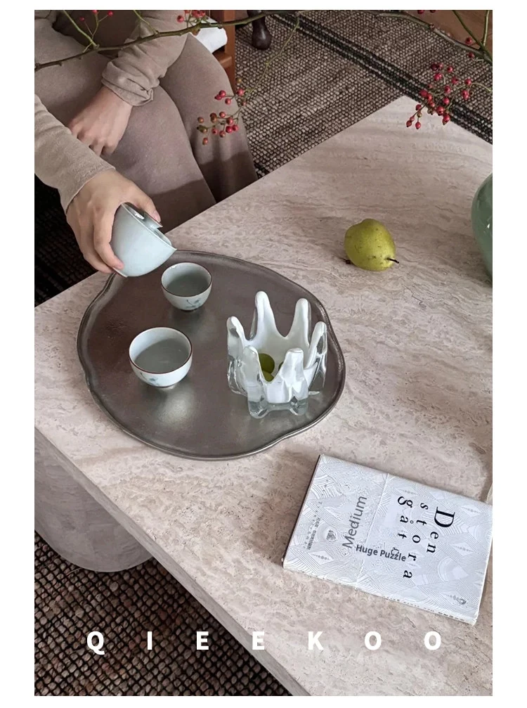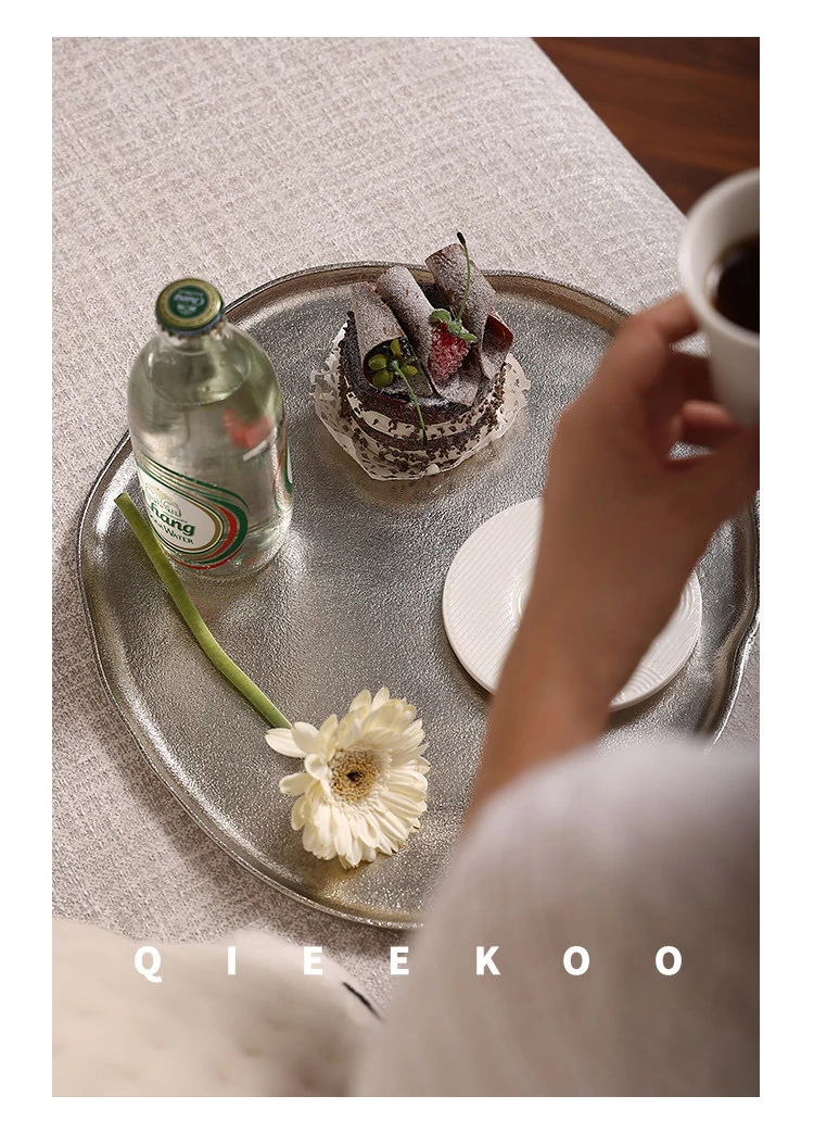 Elegant Matte Silver Aluminum Tray - Imported from India, Luxury Fruit Storage for Living Room, Perfect for Stylish Home Decor