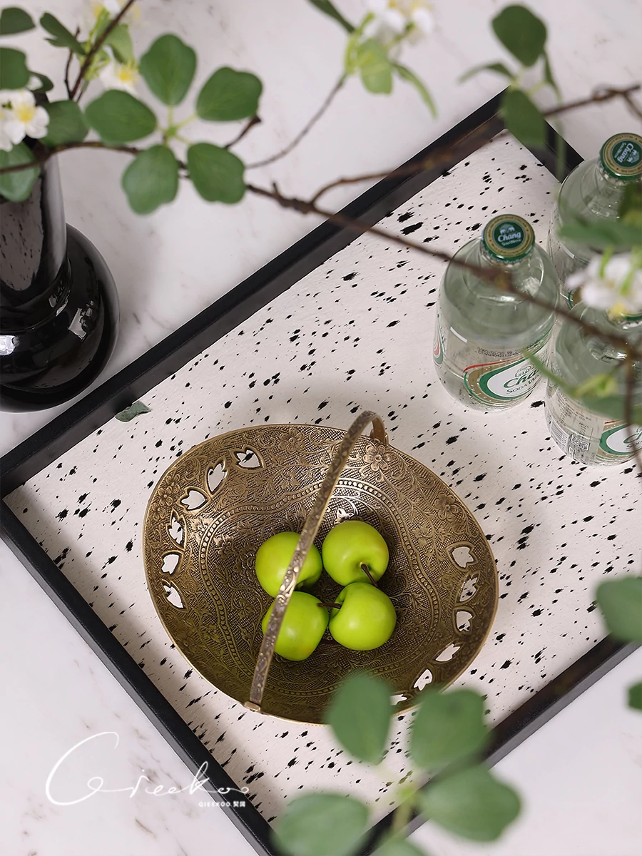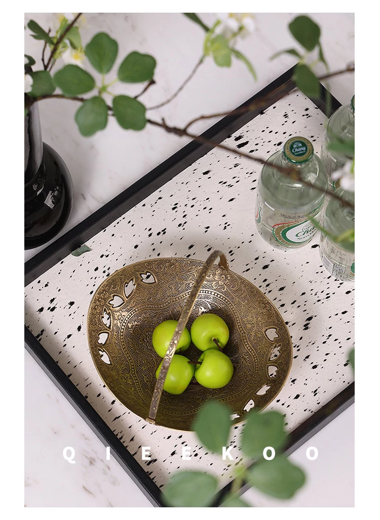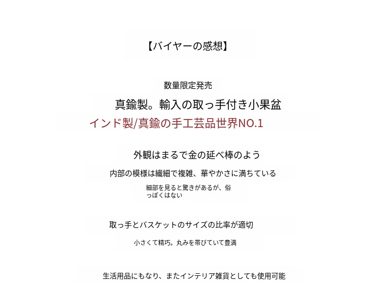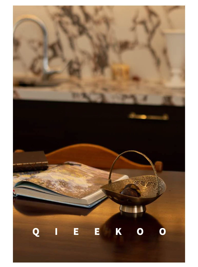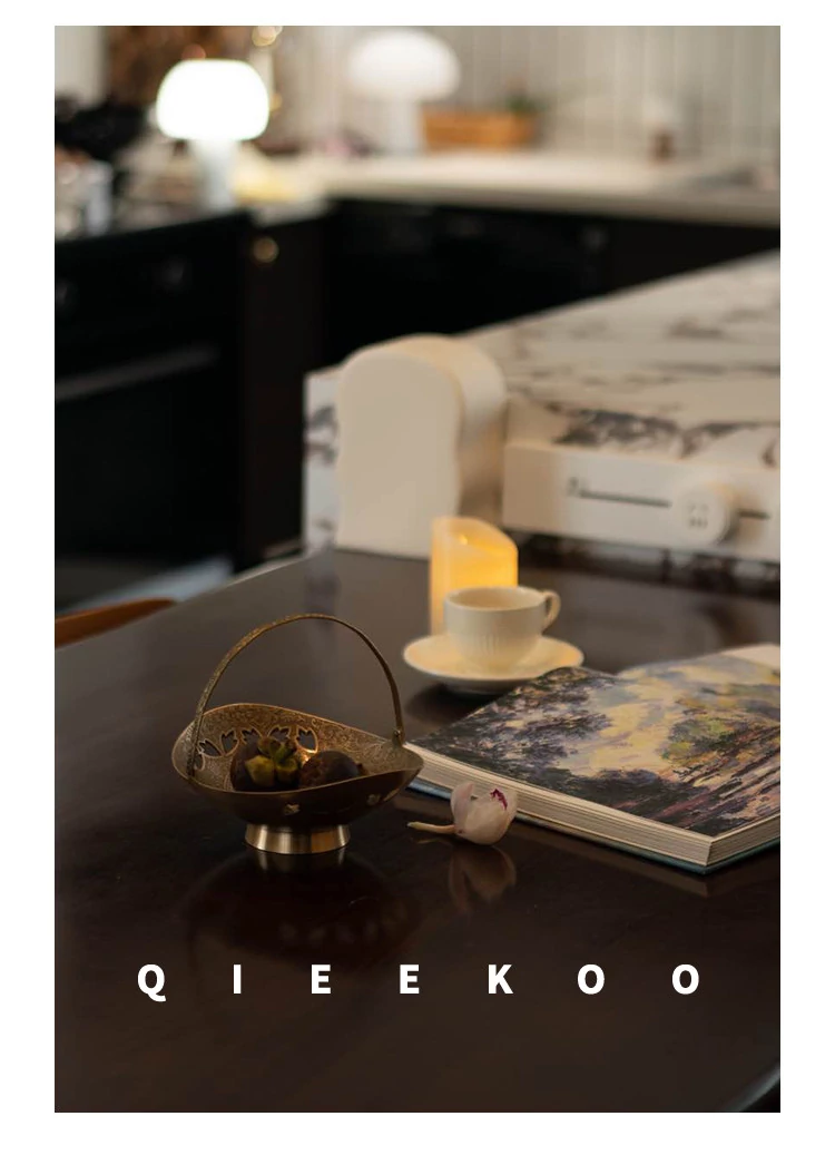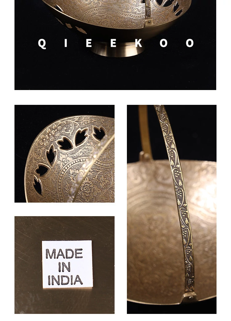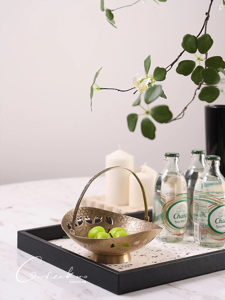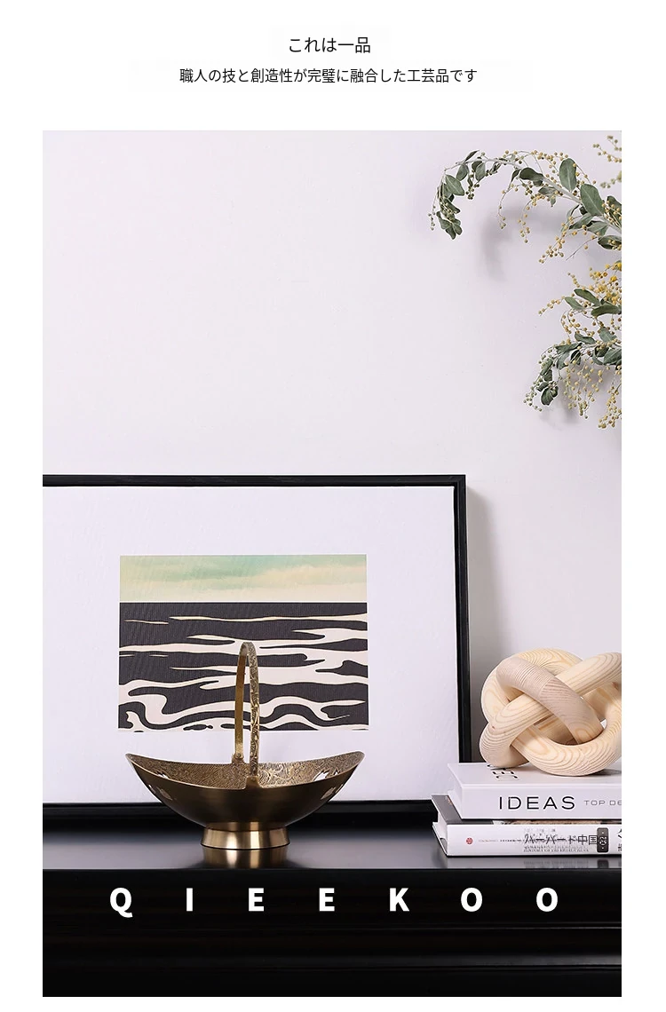 契阔家居の輸入デザイン手作り真鍮元宝型ハンドル付き果物バスケット収納トレー、心を込めたデスクアクセサリーとして最適!あなたのインテリアに華やかさをプラスします。