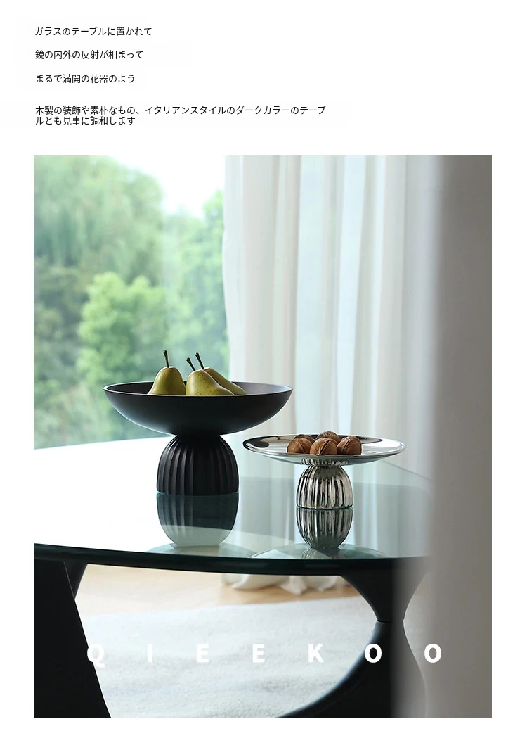 契阔家居の輸入軽奢高脚収納トレイ - リビングルームにぴったりなイタリアンミニマリズムのティーテーブル用ドライフルーツトレイ。洗練されたデザインでおしゃれな空間を演出します!