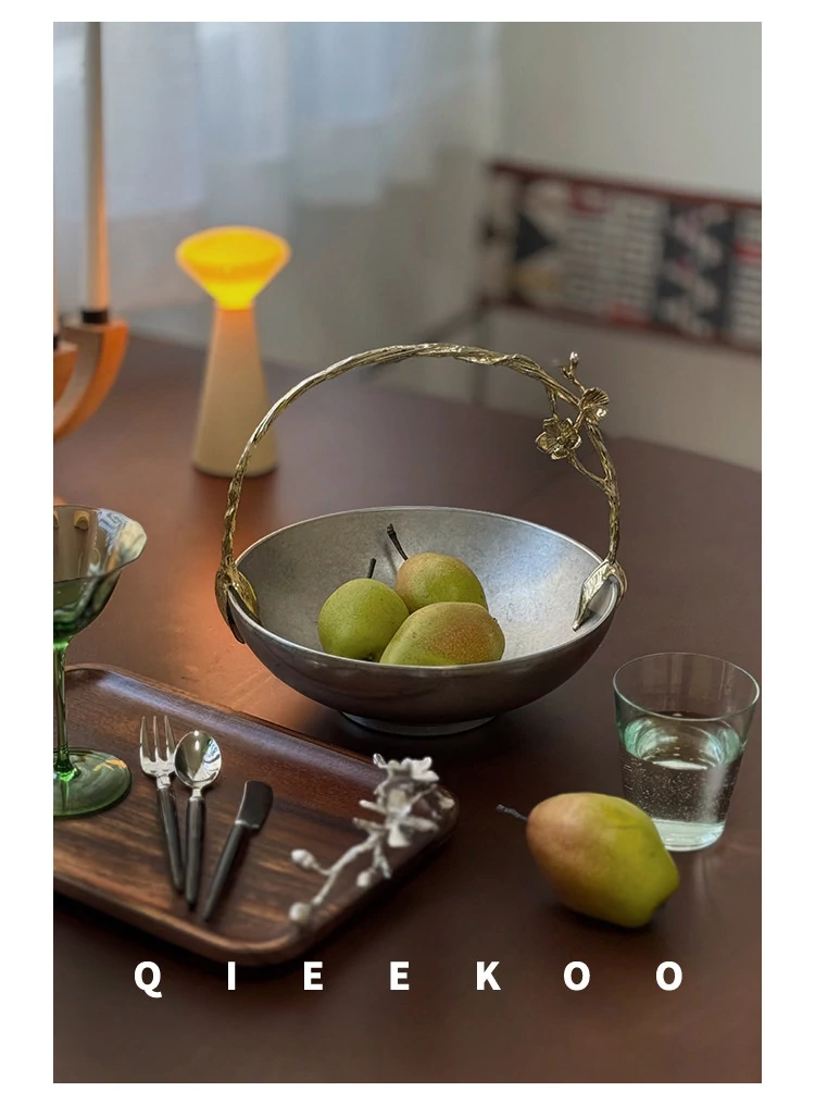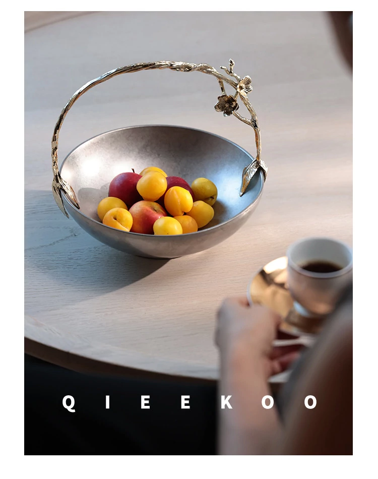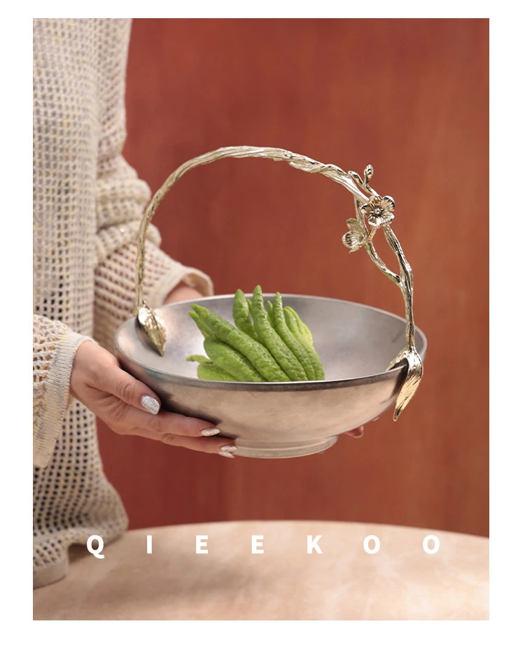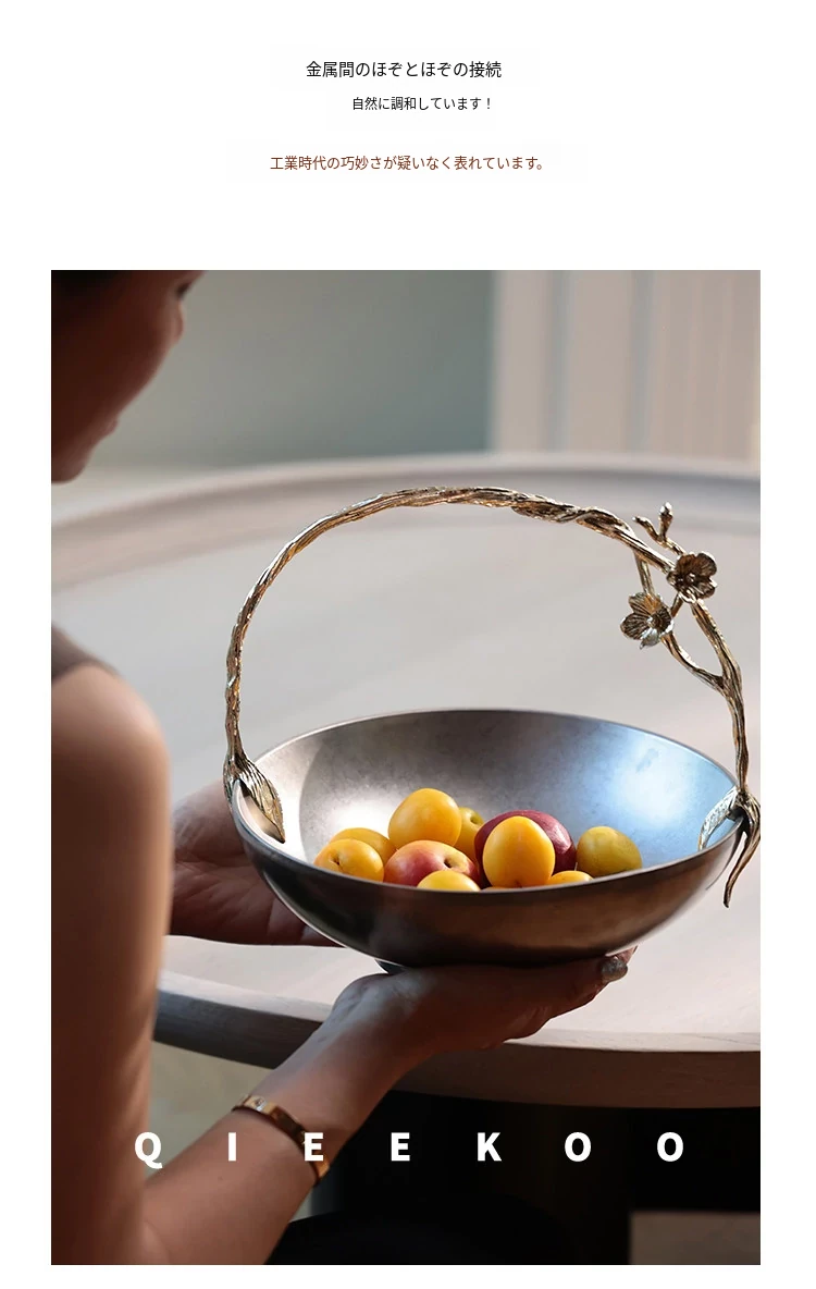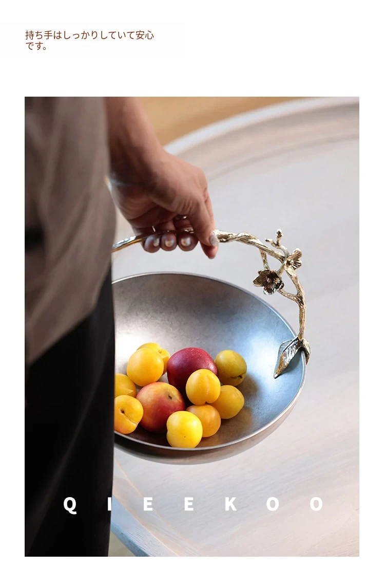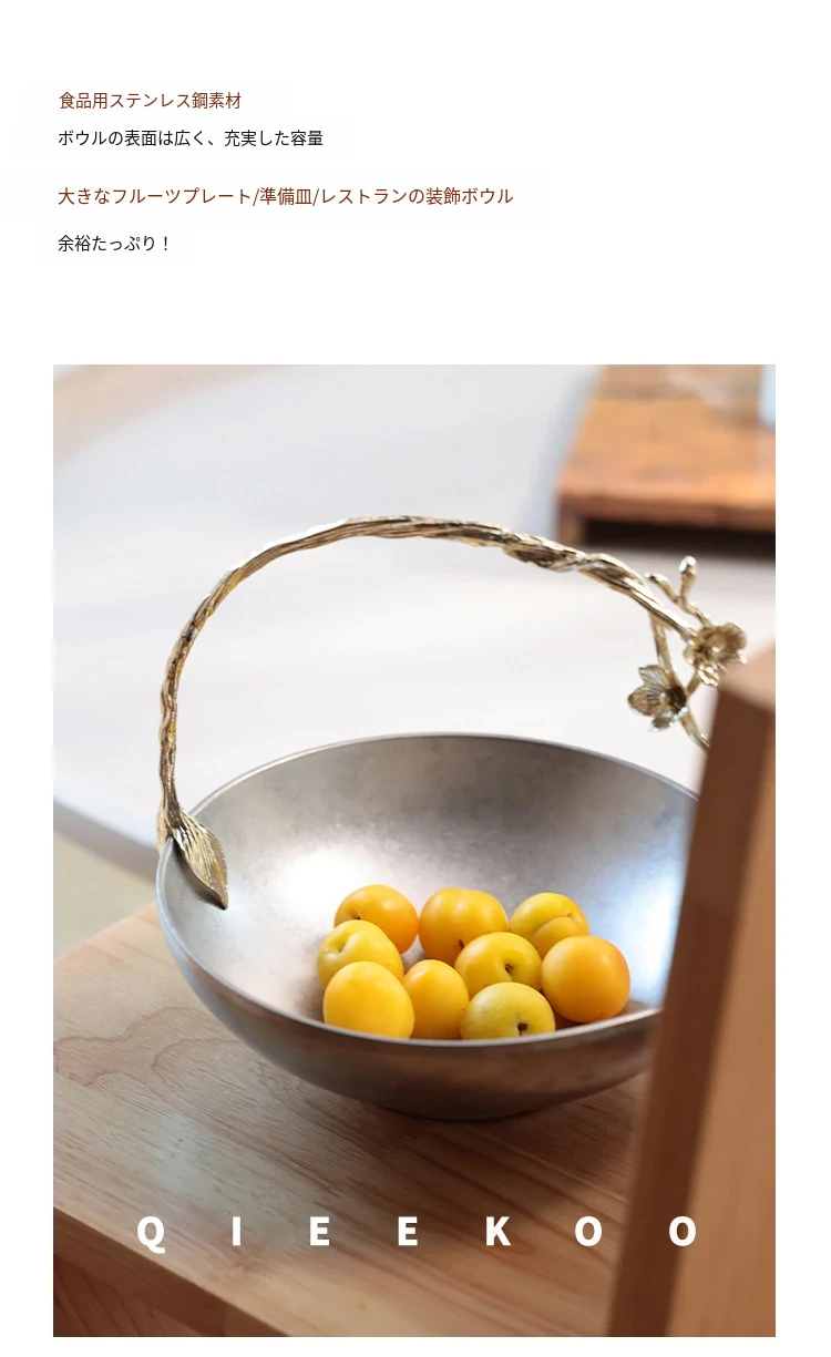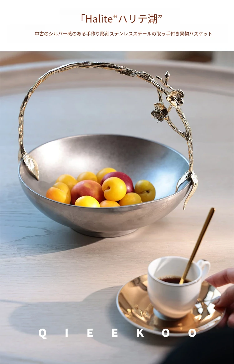 契阔家居リビングデスク収納 中古シルバー感 手作り彫刻ステンレス製ハンドル フルーツバスケット - 美しいデザインで、あなたのインテリアを引き立てる!