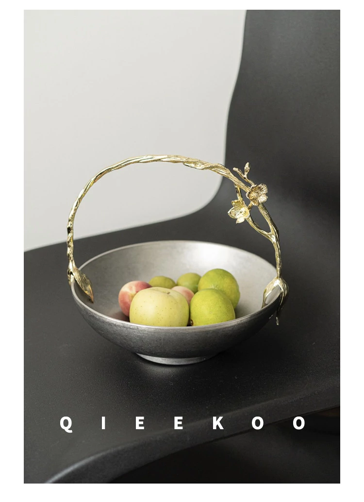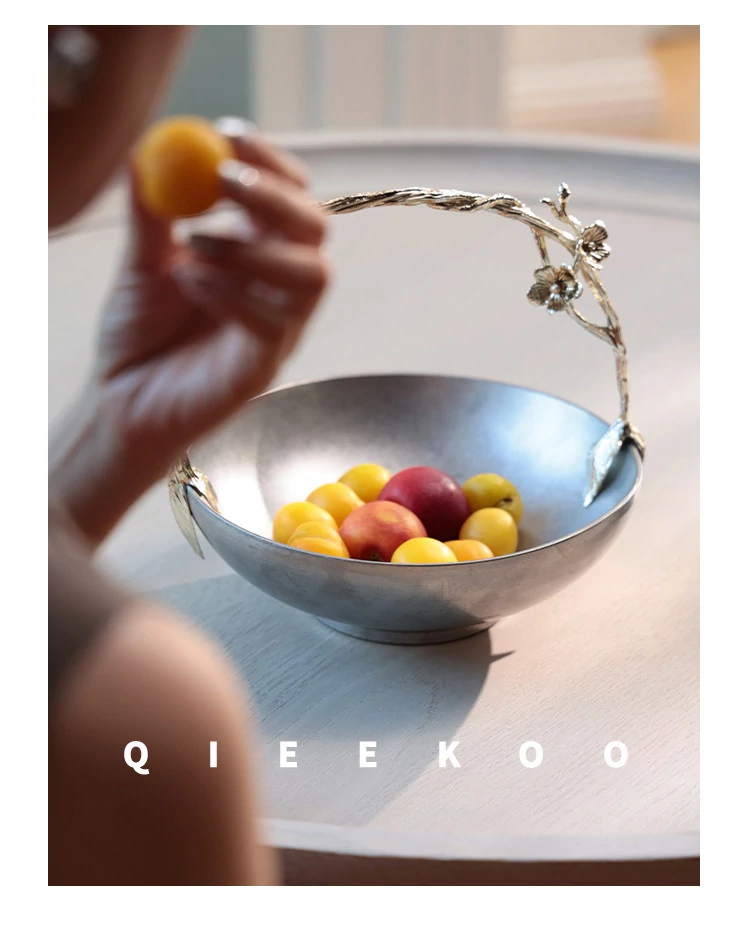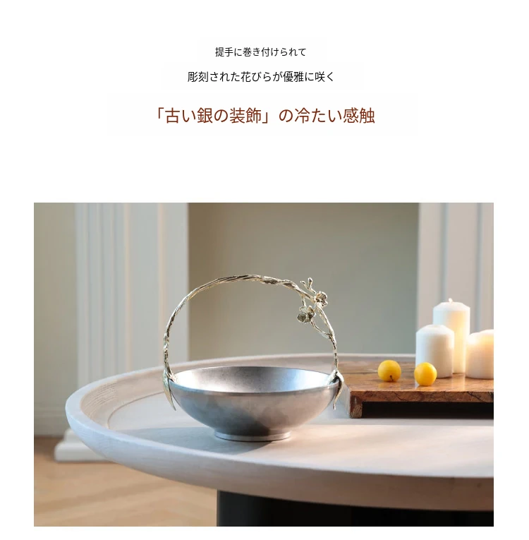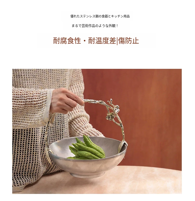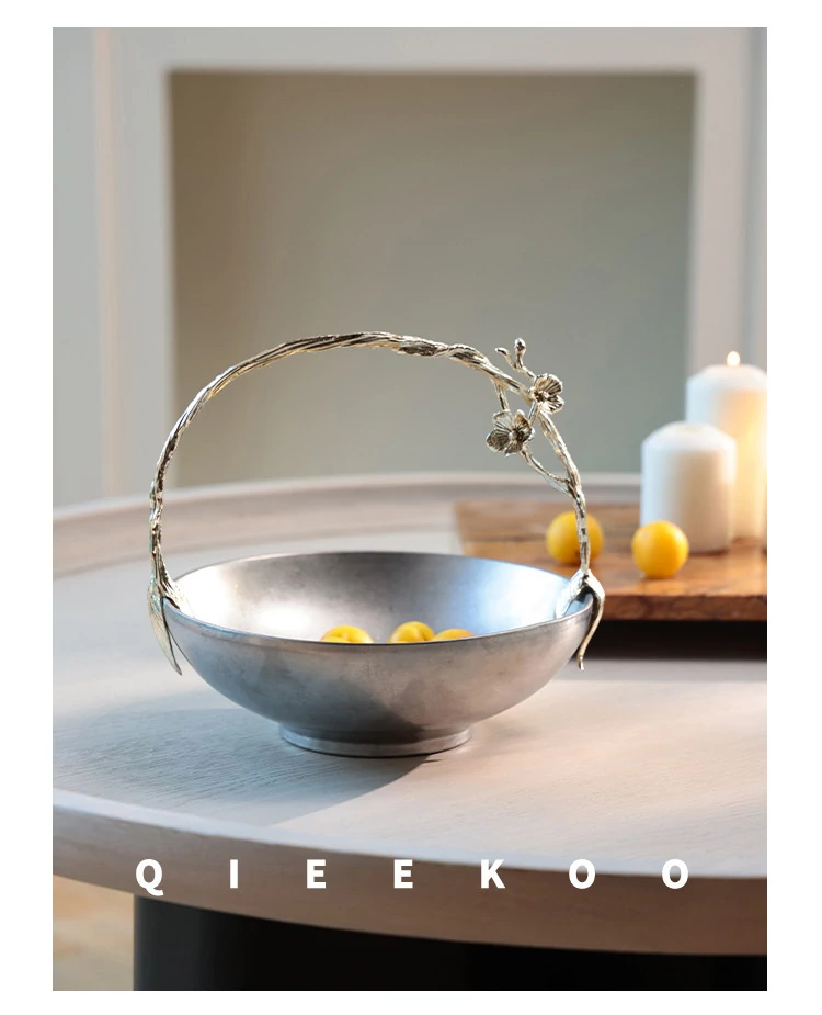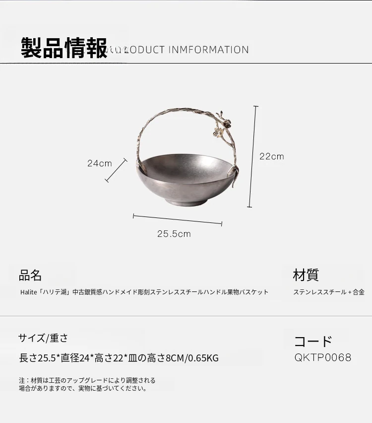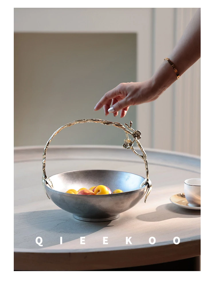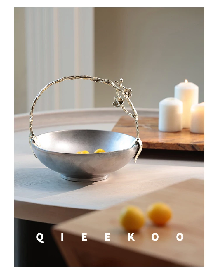 契阔家居リビングデスク収納 中古シルバー感 手作り彫刻ステンレス製ハンドル フルーツバスケット - 美しいデザインで、あなたのインテリアを引き立てる!