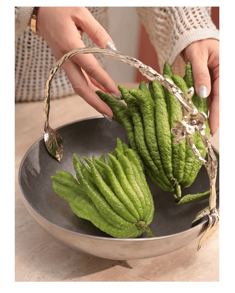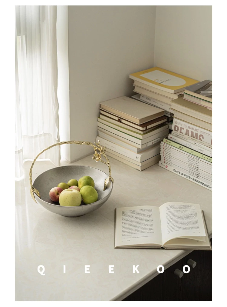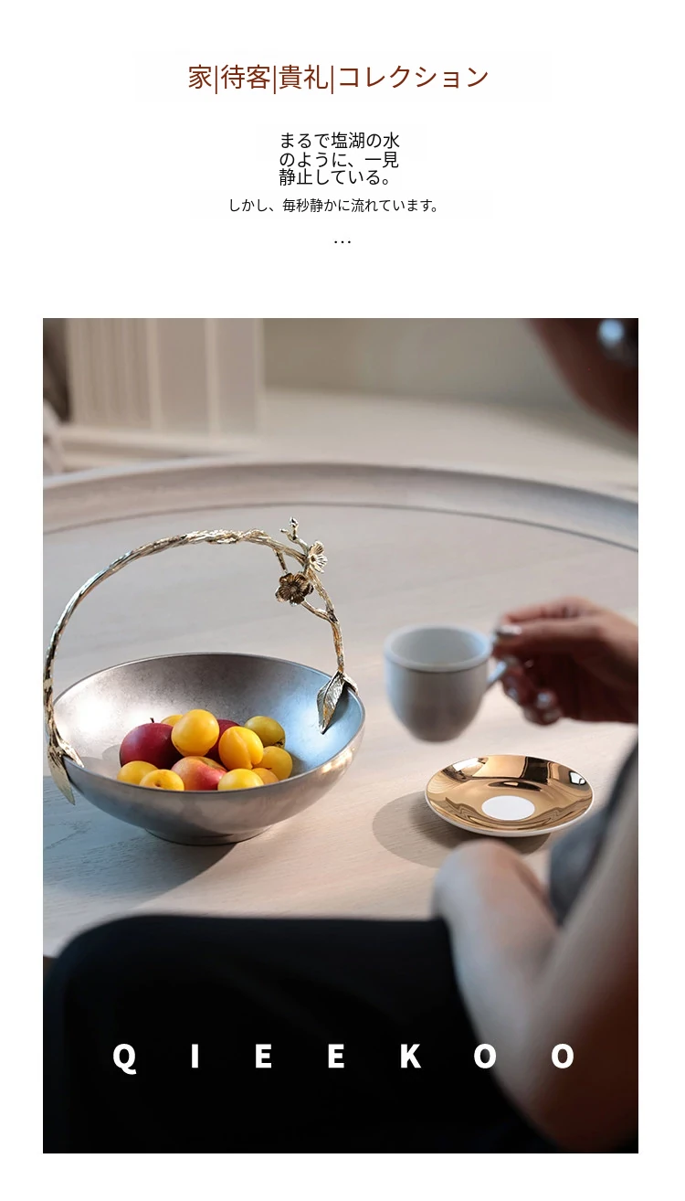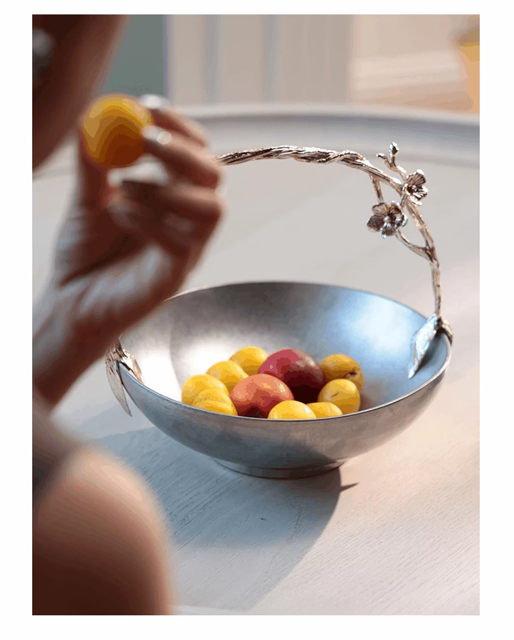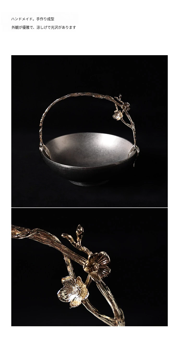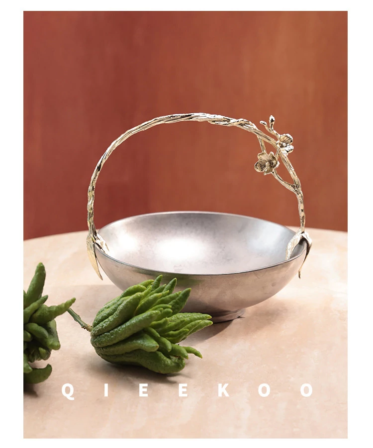 契阔家居リビングデスク収納 中古シルバー感 手作り彫刻ステンレス製ハンドル フルーツバスケット - 美しいデザインで、あなたのインテリアを引き立てる!