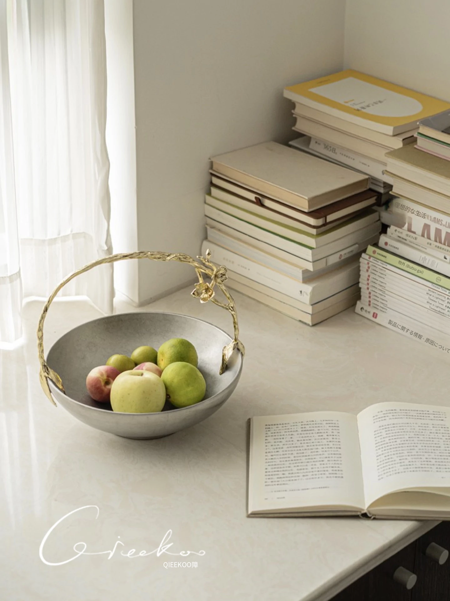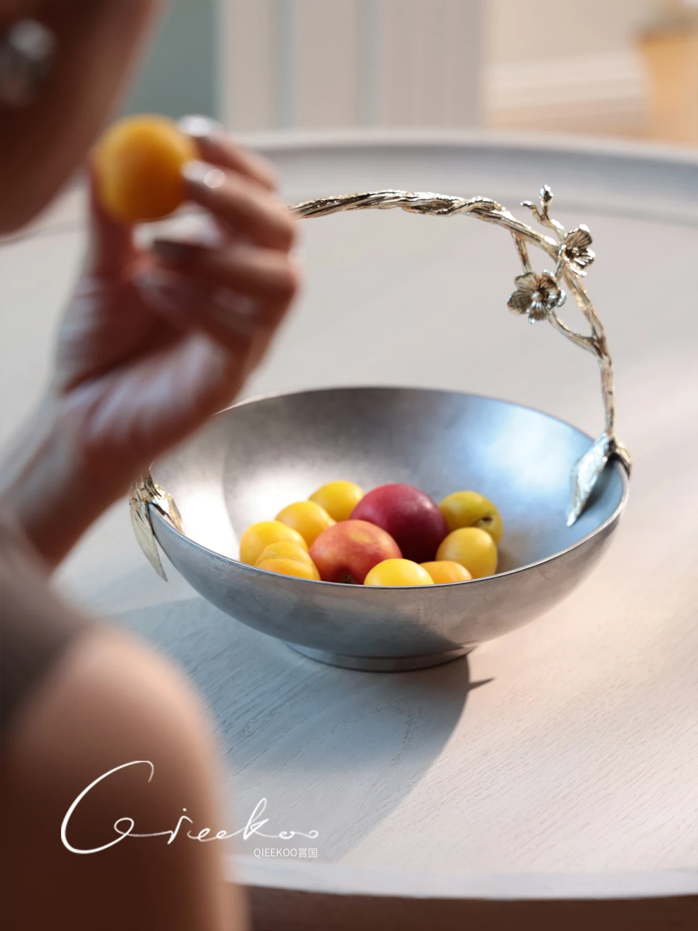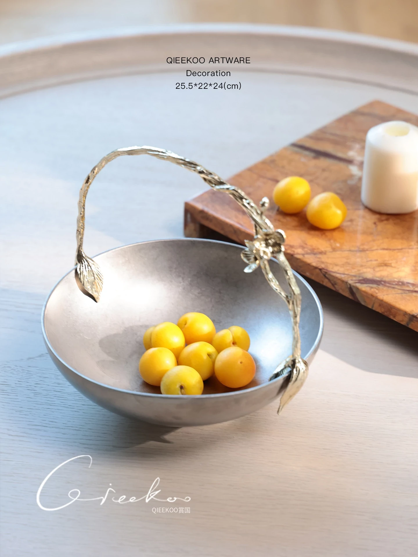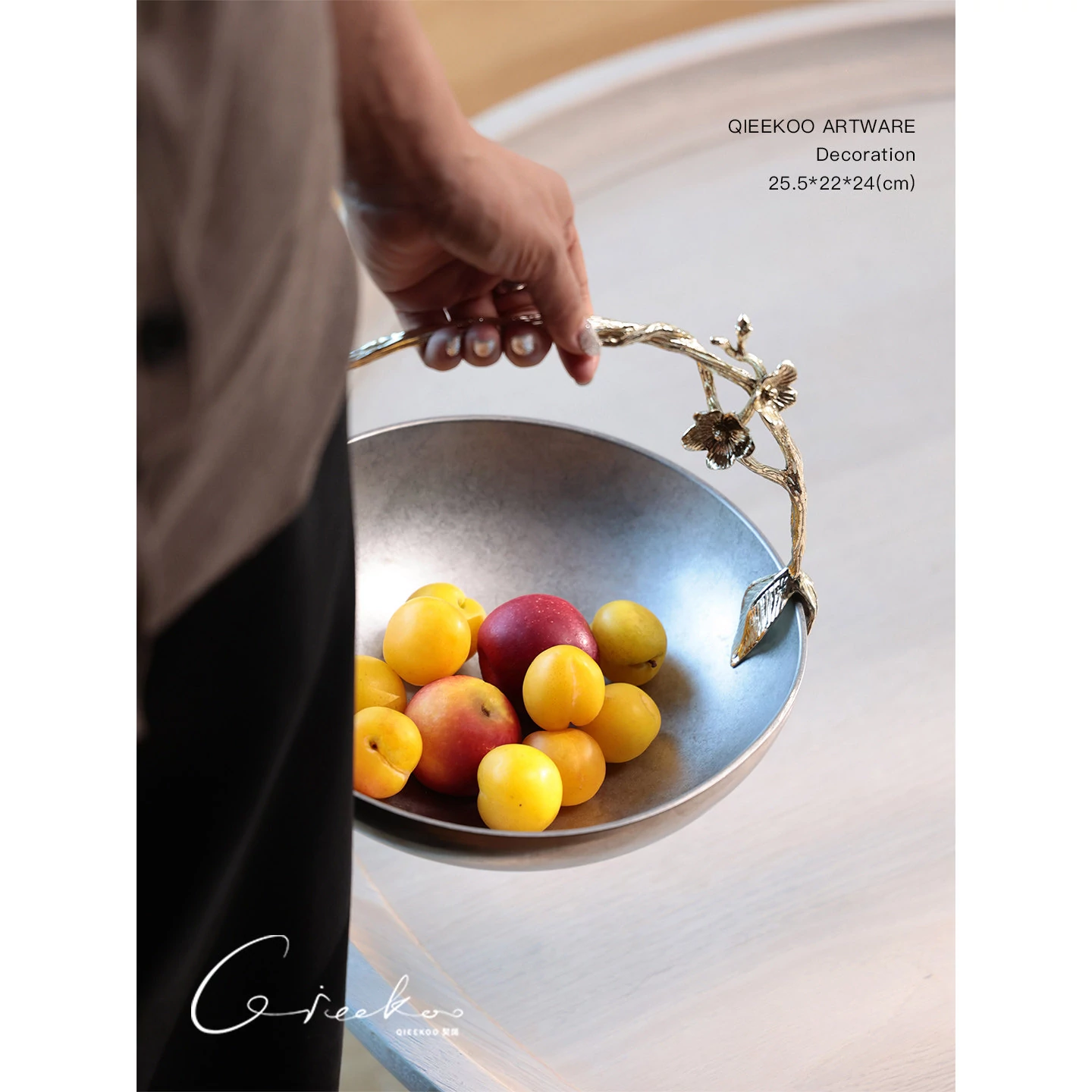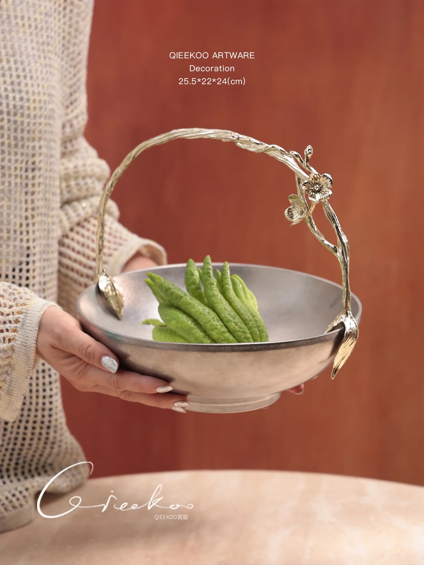 契阔家居リビングデスク収納 中古シルバー感 手作り彫刻ステンレス製ハンドル フルーツバスケット - 美しいデザインで、あなたのインテリアを引き立てる!